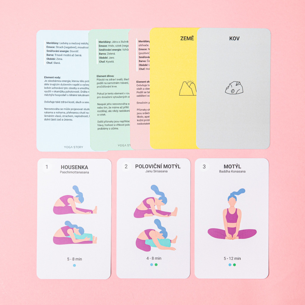 První balíček 52 oboustranných karet, které vás vtáhnou do světa klidu, uvolnění a poznání těla i mysli. S nimi konečně naberete tu správnou sílu, energii a pořádně se uvolníte. To vše vlastním tempem, v pohodlí domova a bez nepříjemných pocitů.