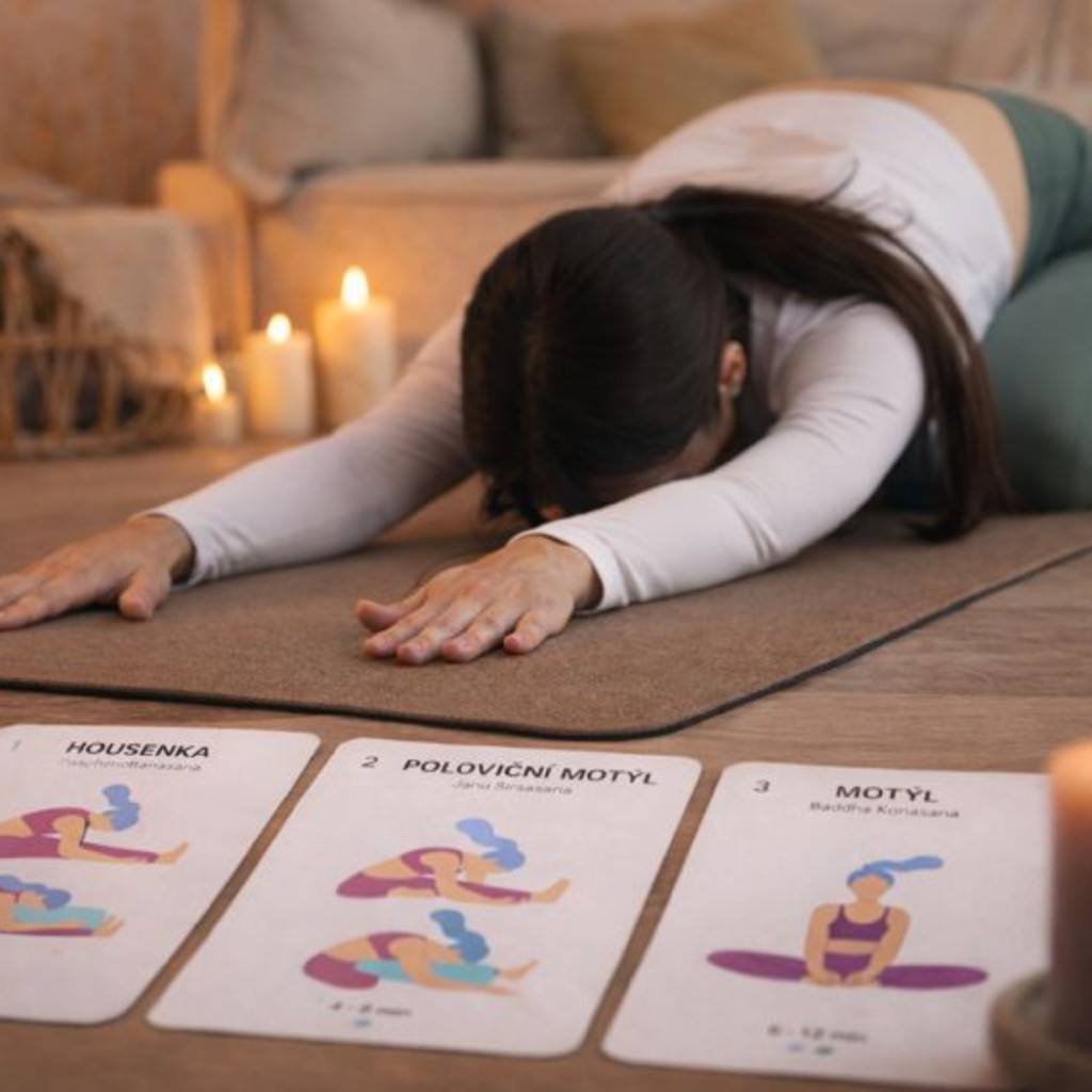 - 35x karta: Jógové pozice - ilustrovaná karta s podrobným popisem provedení