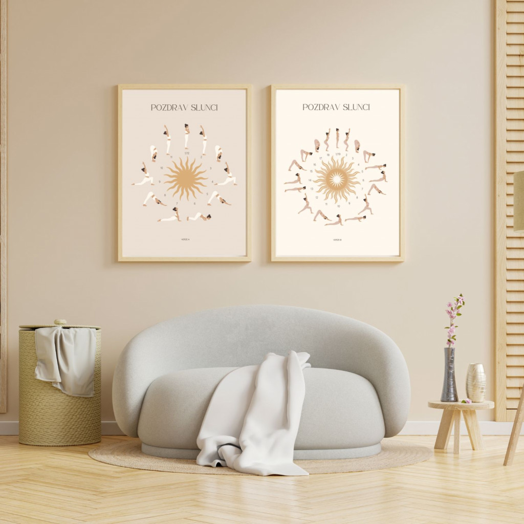 A když se rozhodnete cvičit doma, pozdrav slunci B přináší do Vašeho interiéru uklidňující toné béžové barvy, které Vám poskytnou přívětivý a hřejivý pocit stejně jako slunce. Tak proč si neudělat radost a neobdarovat sami sebe tímto praktickým a krásným pomocníkem? Pozdrav slunci B je tady pro Vás!